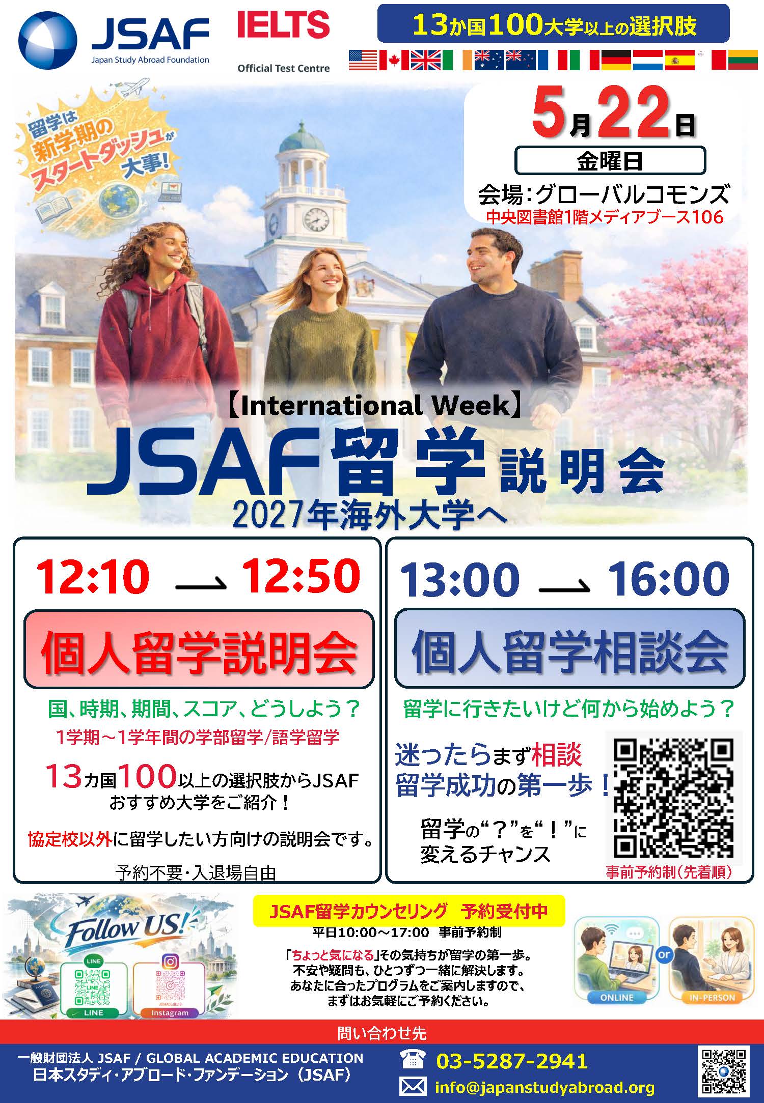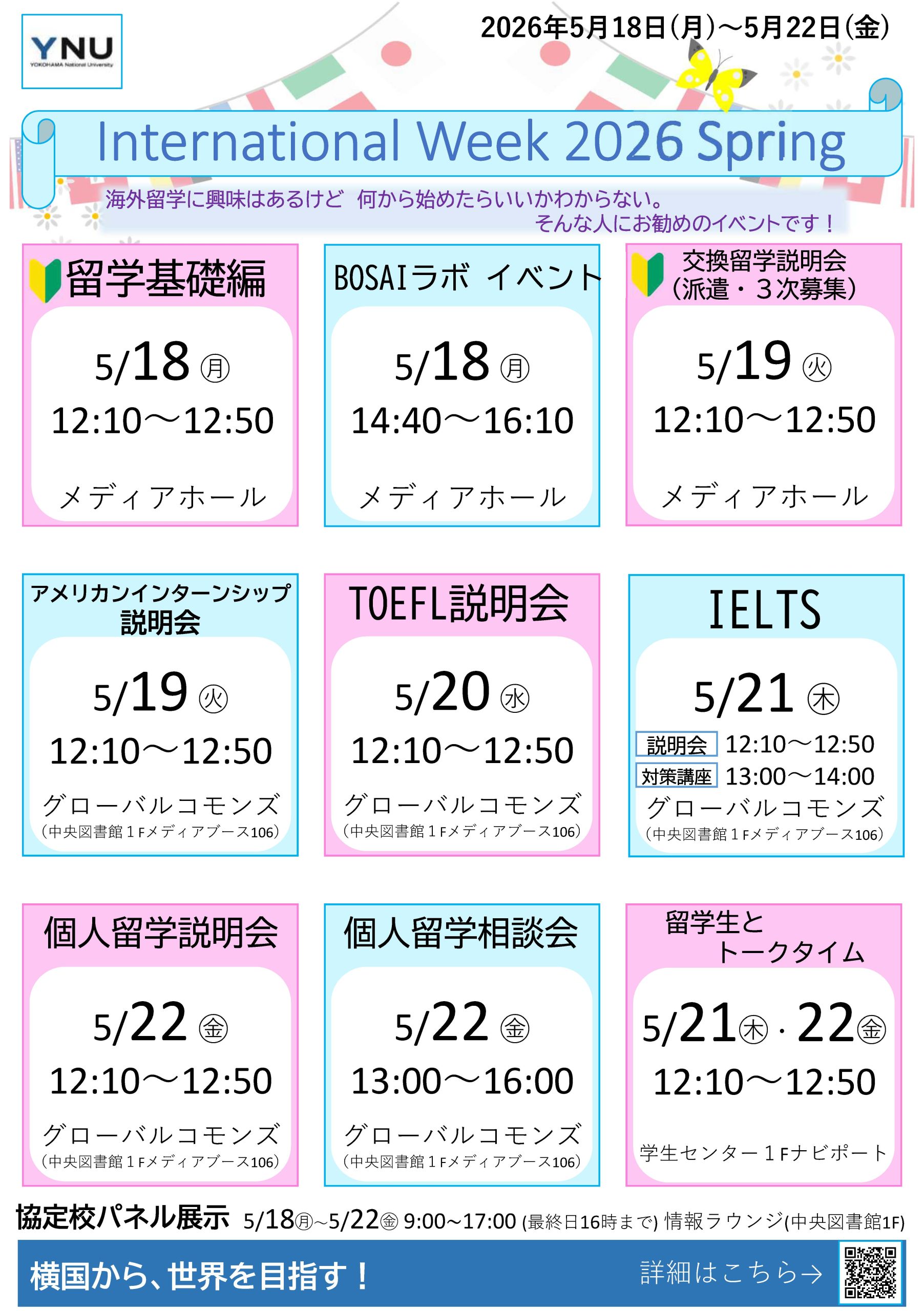 2026インターナショナルウィーク(春)を5月18日(月)~5月22日(金)に開催します。